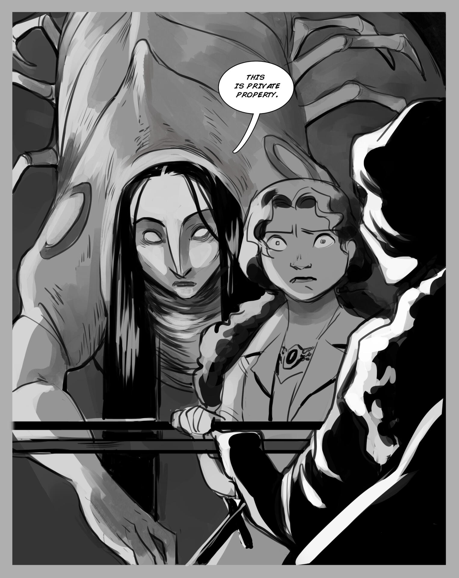 8-page short comic in the Girls who Love Monsters Anthology by Destine Carbone.Detective Eve After is called to investigate a blind psychologist living with a monster. Her assumptions on the case quickly spiral into chaos as things fail to be as they seem.READ PREVIEW: